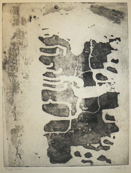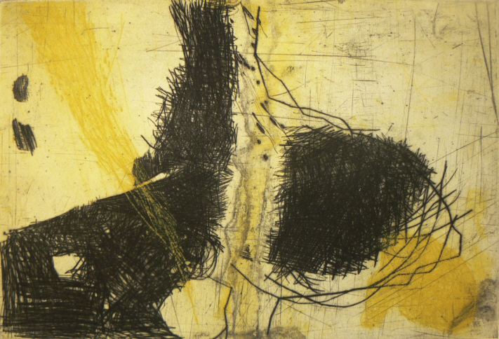 Kaltnadel- Radierung auf angeätzter Platte, Pinselätzung