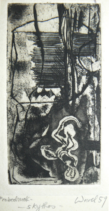 Kaltnadel- Radierung auf angeätzter Platte