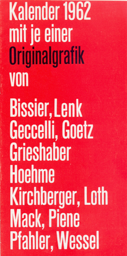 12 Künstlern. Neben Wessel u.a. Goetz, Hoehme, Mack und Piene.