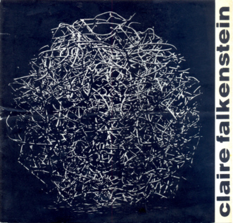 Einzelausstellung von Claire Falkenstein. 6 seitiger Flyer in schwarz weiss. Einführung von Michel Tapiè. Zweiseitiger Text zu und über Claire Falkenstein von Wilhelm Wessel.
